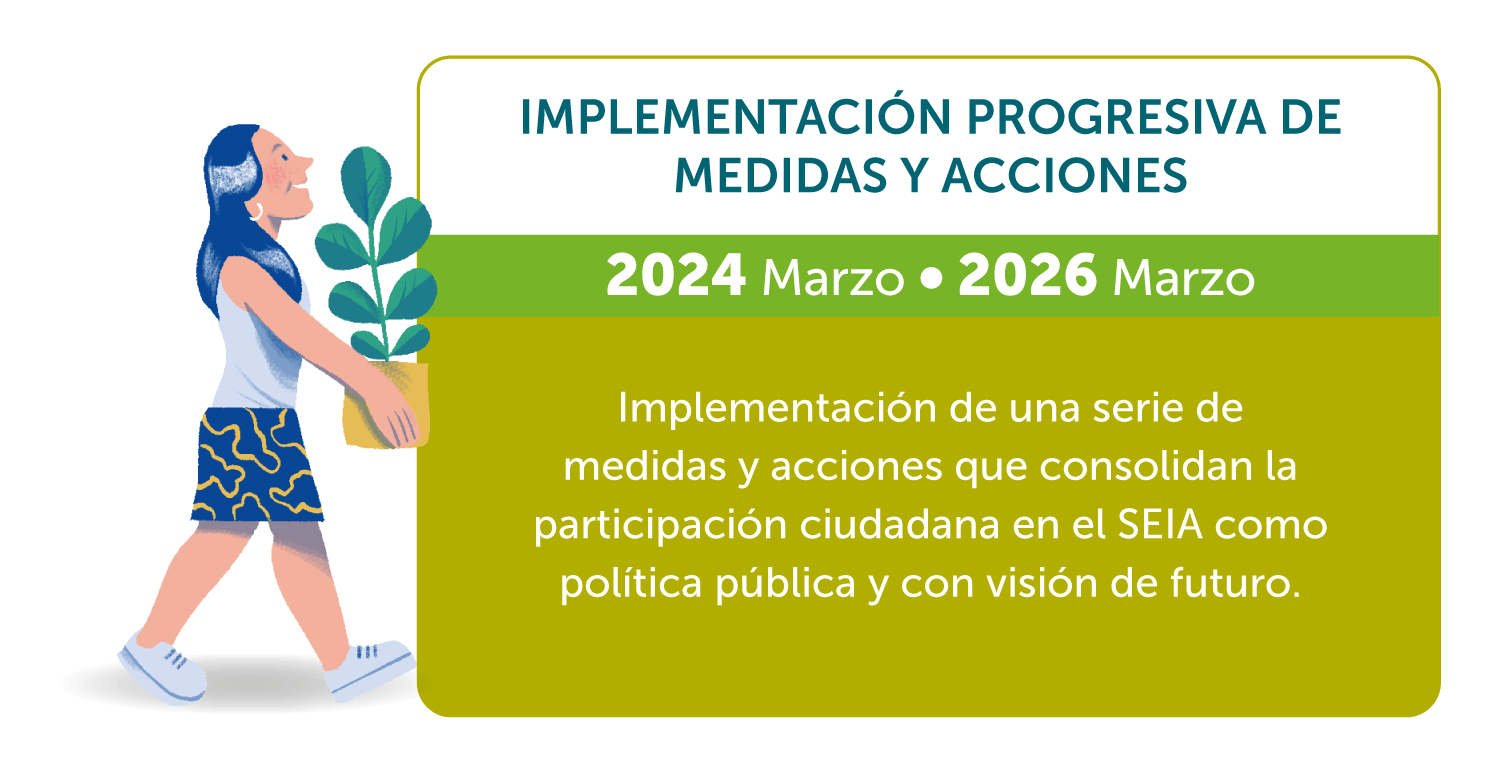 Sobre la base del trabajo previo, el SEA avanzó desde una fase de diagnóstico hacia una fase de implementación a través de medidas orientadas a incorporar progresivamente los principios de Escazú en el SEIA, siendo una de las partes responsables del Estado en el Plan Nacional de Implementación Participativa del Acuerdo de Escazú 2024–2030 (PIPE).