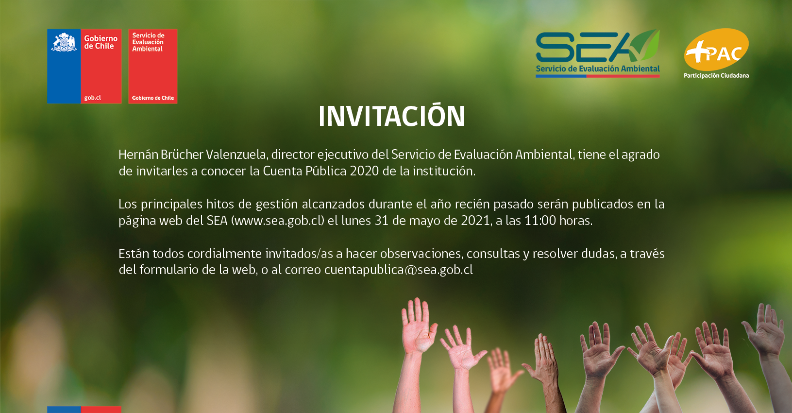 El Servicio de Evaluación Ambiental pone a disposición de la ciudadanía la Cuenta Pública Participativa 2020, con el propósito de recoger comentarios o preguntas.
