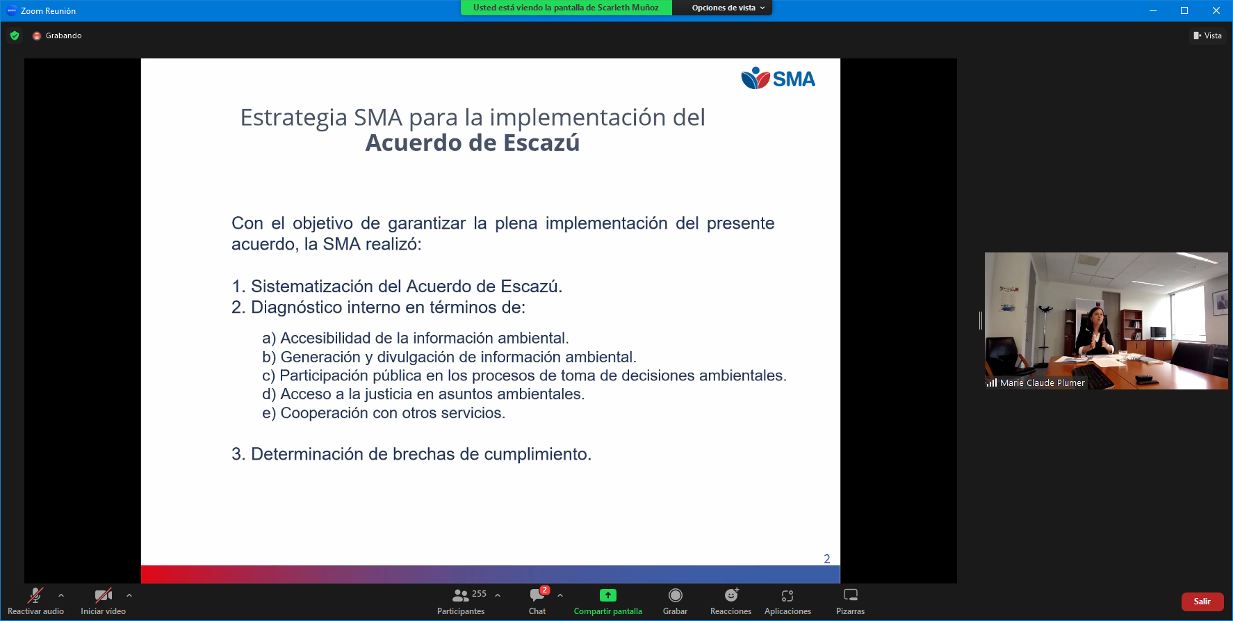 A su vez, la directora ejecutiva del Servicio de Evaluación Ambiental (SEA), Valentina Durán, comentó que “como parte de los nuevos lineamientos de la dirección ejecutiva del SEA para el período 2022-2026, hemos iniciado la incorporación progresiva el Acuerdo de Escazú en nuestra gestión. En ese sentido, ya hemos definido indicadores de desempeño colectivo y de alta dirección pública tendientes a mejorar estándares de participación ciudadana y promover la elaboración de guías y criterios que coloquen al Acuerdo de Escazú en el corazón de nuestro actuar”.