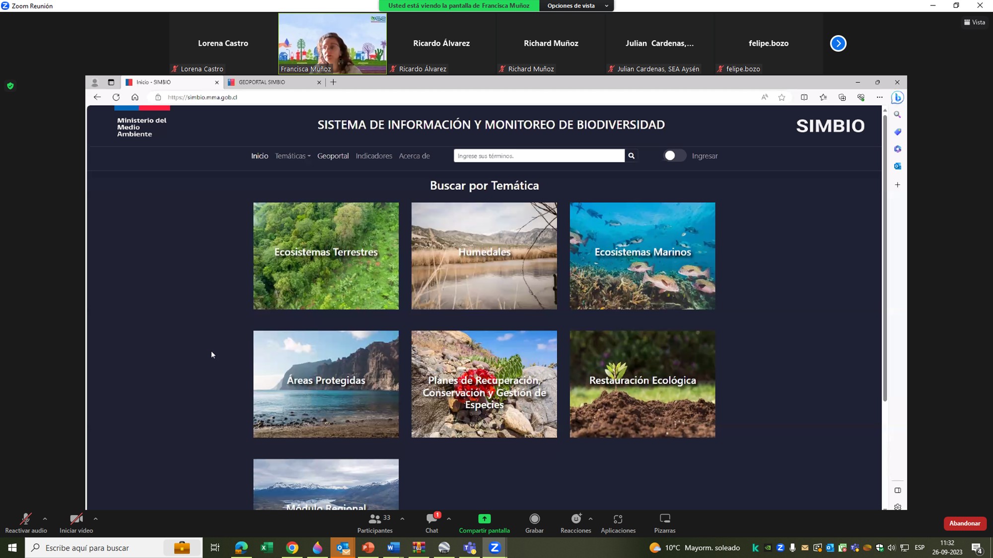 Durante la jornada se analizó la metodología propuesta para la incorporación de la variable “cambio climático” en la evaluación ambiental, se realizaron ejercicios de aplicación de conceptos claves y se revisaron plataformas de interés, tales como “ARCLIM” (Atlas de Riesgos Climáticos) y “SIMBIO” (Sistema de Información y Monitoreo de Biodiversidad).