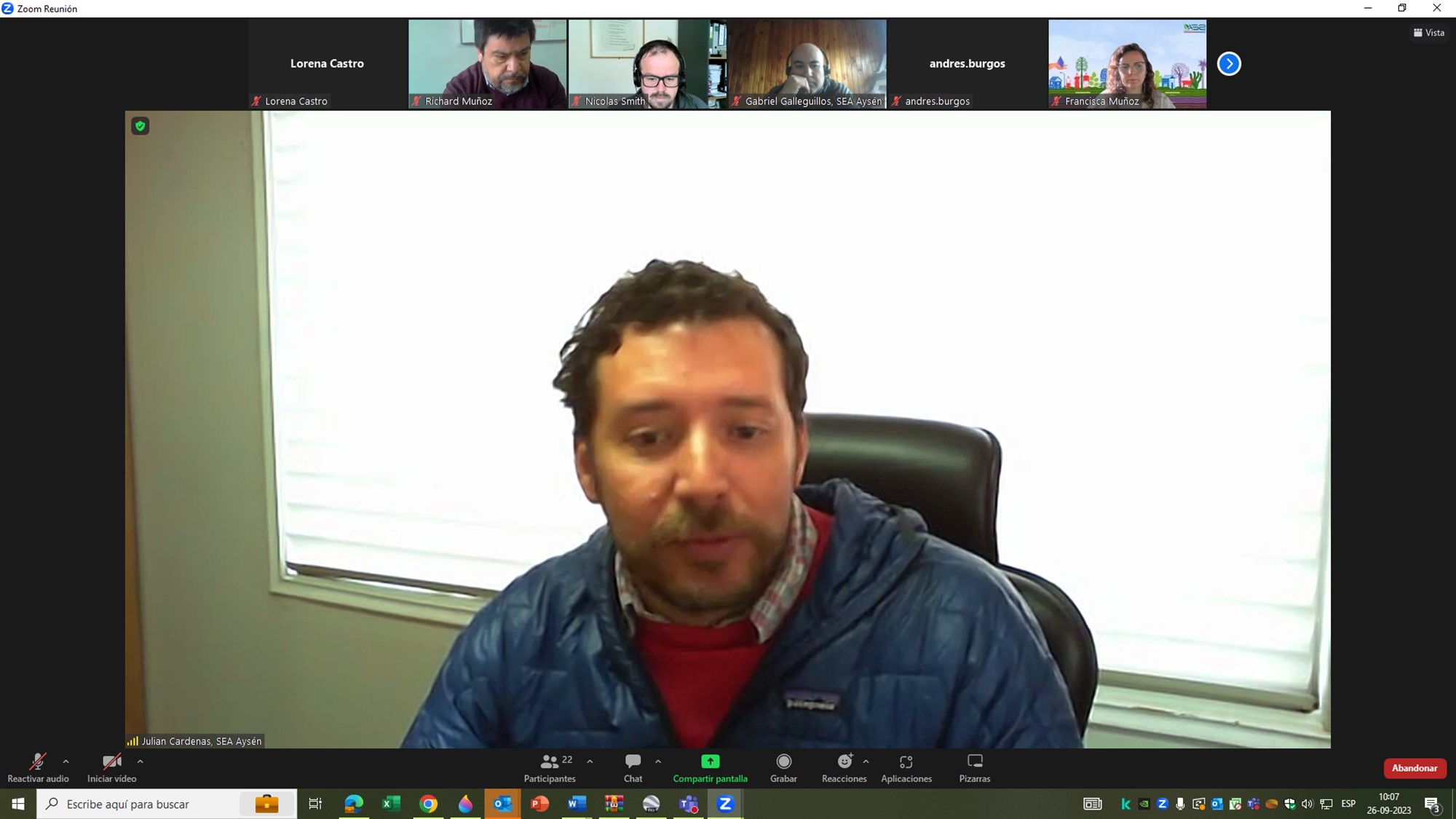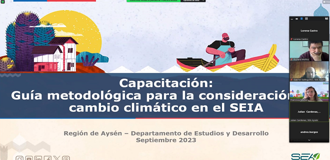 El Departamento de Estudios y Desarrollo del SEA realizó una capacitación el 26 de septiembre, dirigida al Comité Técnico de evaluación ambiental de la Región de Aysén, sobre los principales contenidos de la Guía metodológica para la consideración del cambio climático en el SEIA.