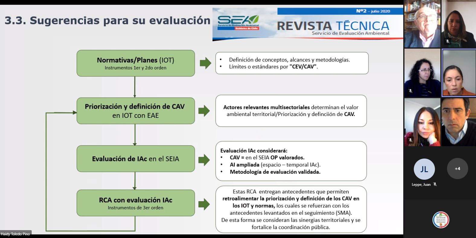 En una reunión realizada el miércoles 28 de abril, los miembros del Consejo de la Sociedad Civil del SEA (Cosoc) recibieron información sobre los “Impactos acumulativos en el SEIA”, a cargo de Haydi Toledo Pino, profesional de la División de Evaluación de Impacto Ambiental y Participación Ciudadana del SEA.