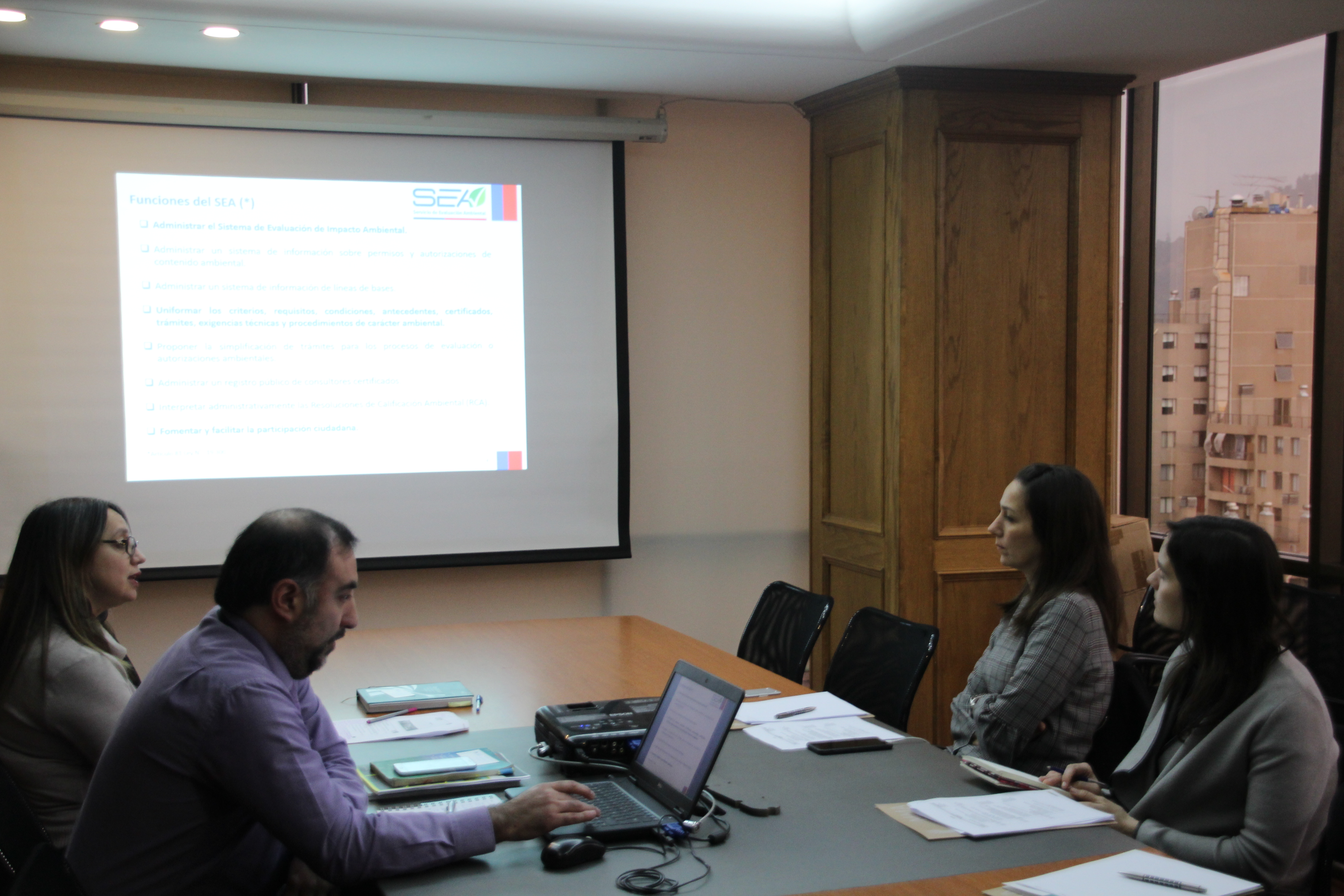 En la cita fueron recibidas por el director ejecutivo, Hernán Brücher, quien junto a otros jefes de División y Departamento presentaron los avances en evaluación ambiental en el país, además de los desafíos del SEA.