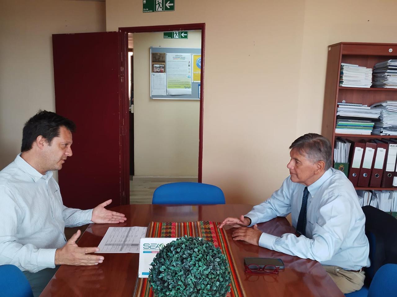 El director regional del Servicio de Evaluación Ambiental (SEA), de Arica y Parinacota, Mauricio Gutiérrez, sostuvo un primer encuentro, de carácter protocolar, con el recientemente nombrado seremi del Medio Ambiente de la región, Raúl Gil González. Durante el encuentro ambas autoridades pudieron coordinar y dialogar sobre una mesa de trabajo en torno a la o institucionalidad ambiental regional, así como presentar al nuevo seremi el equipo que conforma la dirección regional.