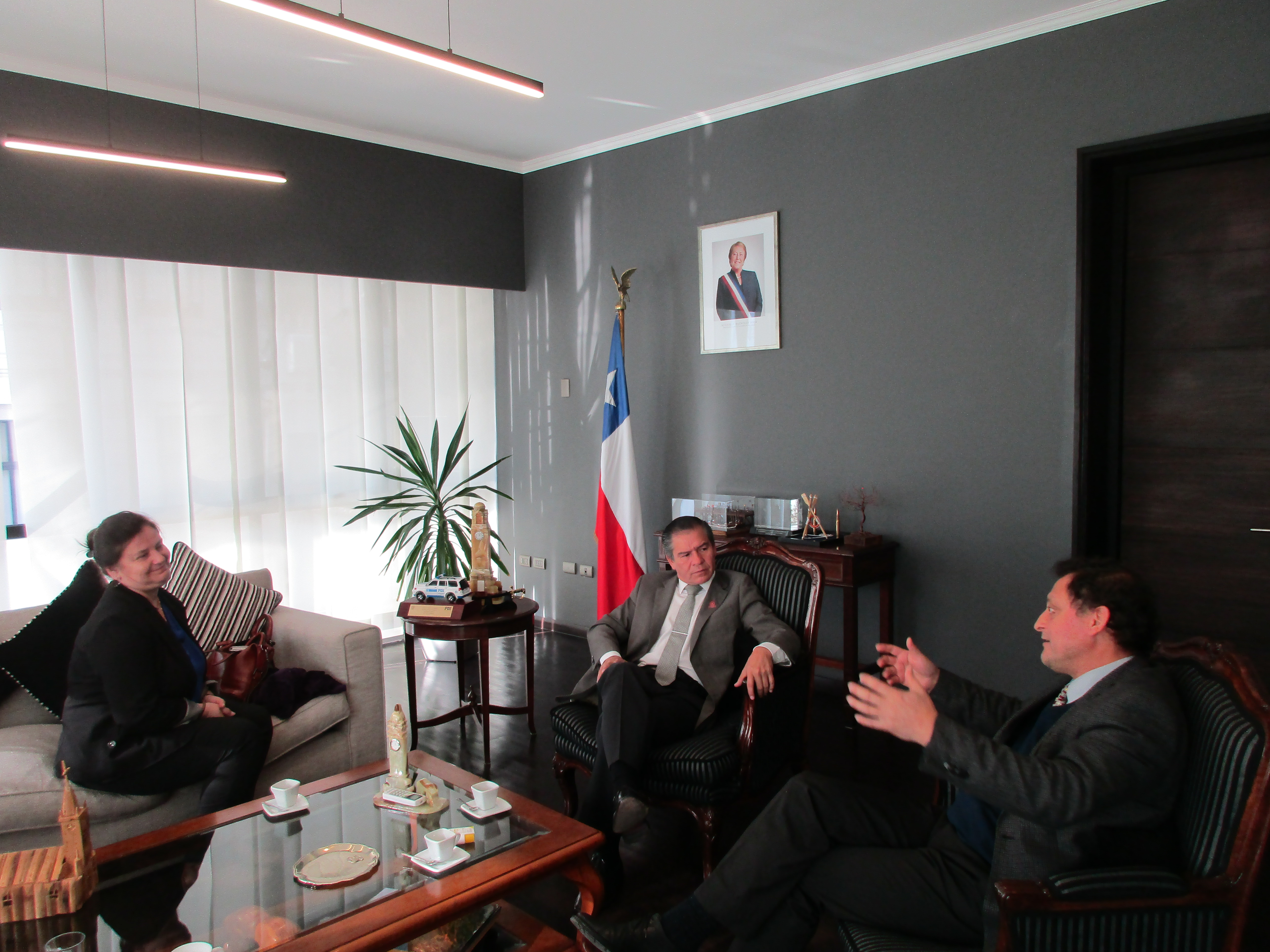 En la oportunidad, el Director Ejecutivo, que estuvo acompañado de profesionales de la Dirección Ejecutiva, se reunió con el Intendente Regional, Valentín Volta, quien destacó el trabajo desarrollado por el SEA y la Comisión de Evaluación que él preside.