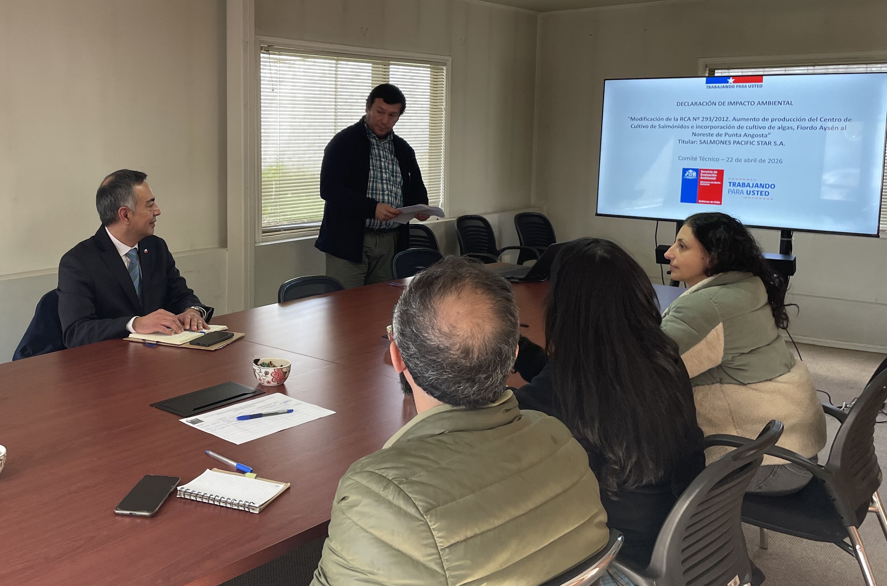 Este 22 de abril se llevó a cabo en dependencias de la dirección regional del SEA Aysén una reunión del comité técnico por la DIA del proyecto “Aumento de biomasa del centro de cultivo de recursos hidrobiológicos salmónidos, Código de centro Nº 110874, Angosta. RCA Nº 293/2012".