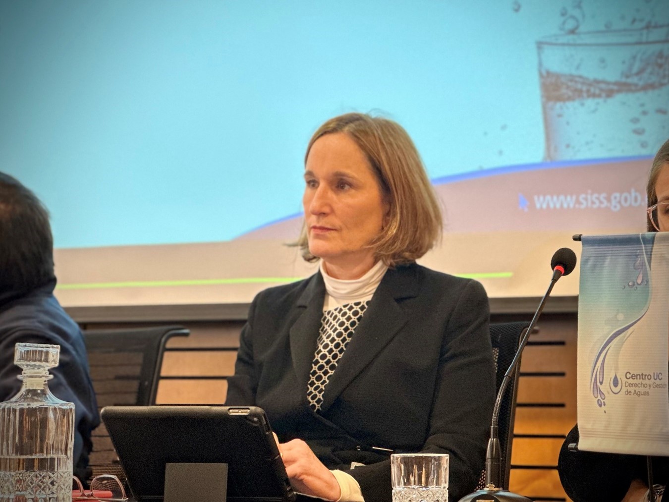 Junto a ella en el panel estuvieron Jorge Rivas, superintendente de Servicios Sanitarios; Rodrigo Sanhueza, director general de Aguas (DGA), y Wilson Ureta, director ejecutivo de la Comisión Nacional de Riego.