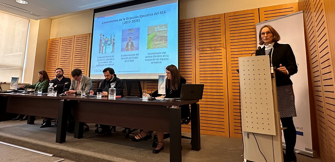 Durante su intervención, la directora Durán se refirió al agua como un elemento muy importante del medio ambiente, además de las distintas tipologías de ingreso relacionadas con este componente, particularmente para proyectos que se someten al Sistema a través de un Estudio de Impacto Ambiental. También durante su exposición se refirió a las principales guías y criterios de evaluación elaborados por el SEA y que tienen que ver con el recurso hídrico y con el cambio climático.