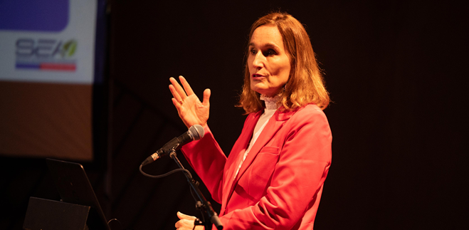 La directora ejecutiva del Servicio de Evaluación Ambiental (SEA), Valentina Durán, fue una de las principales expositores del seminario “Puertos y Logística: Ampliaciones Portuarias y Plataforma Logística”, que se realizó este miércoles 16 de abril en el Parque Cultural de Valparaíso.