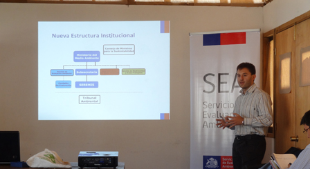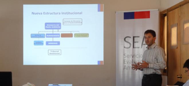 En la ocasión se presentó el marco general de la nueva institucionalidad ambiental, incluyendo el rol de las nuevas instituciones, el Ministerio de Medio Ambiente, el SEA, la Superintendencia de Medio Ambiente y la próxima incorporación de los Tribunales Ambientales. Asimismo, se informó a los y las asistentes sobre las modificaciones incorporadas por la Ley 20.417 al SEIA y a la participación ciudadana.