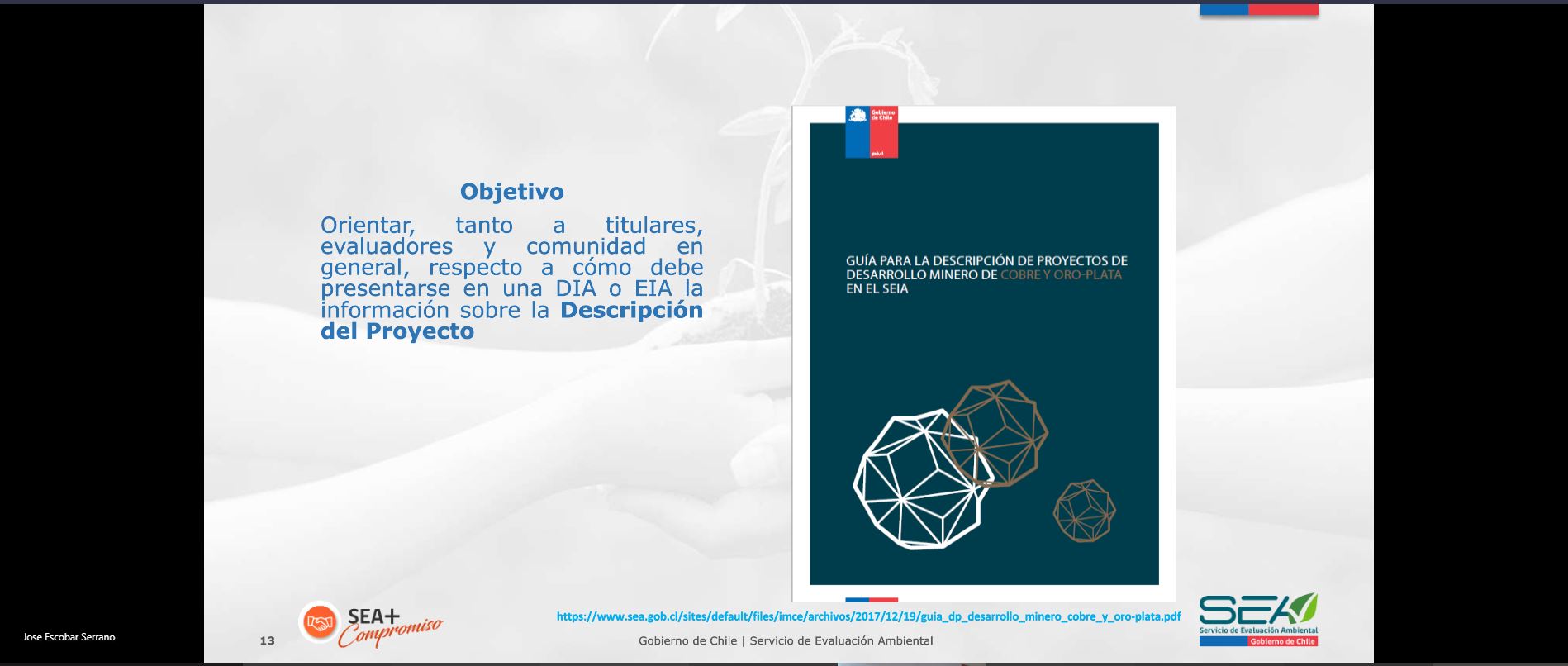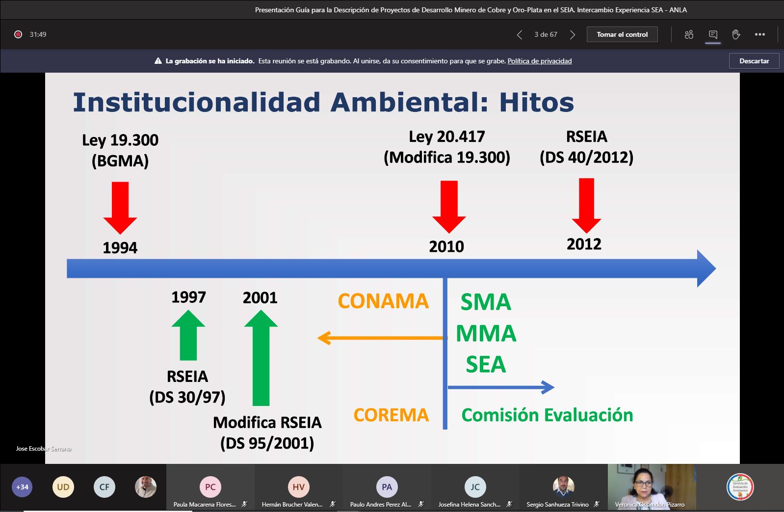 Luego se dio paso a una introducción sobre los principales hitos de la institucionalidad ambiental en Chile, a cargo de la directora regional del SEA Atacama, Verónica Ossandón Pizarro. Posteriormente se efectuó la presentación de la “Guía para la Descripción de Proyectos de Desarrollo Minero de Cobre y Oro-Plata en el SEIA”, la que fue relatada por José Escobar Serrano, encargado de Evaluación de esta Dirección Regional del SEA Atacama.