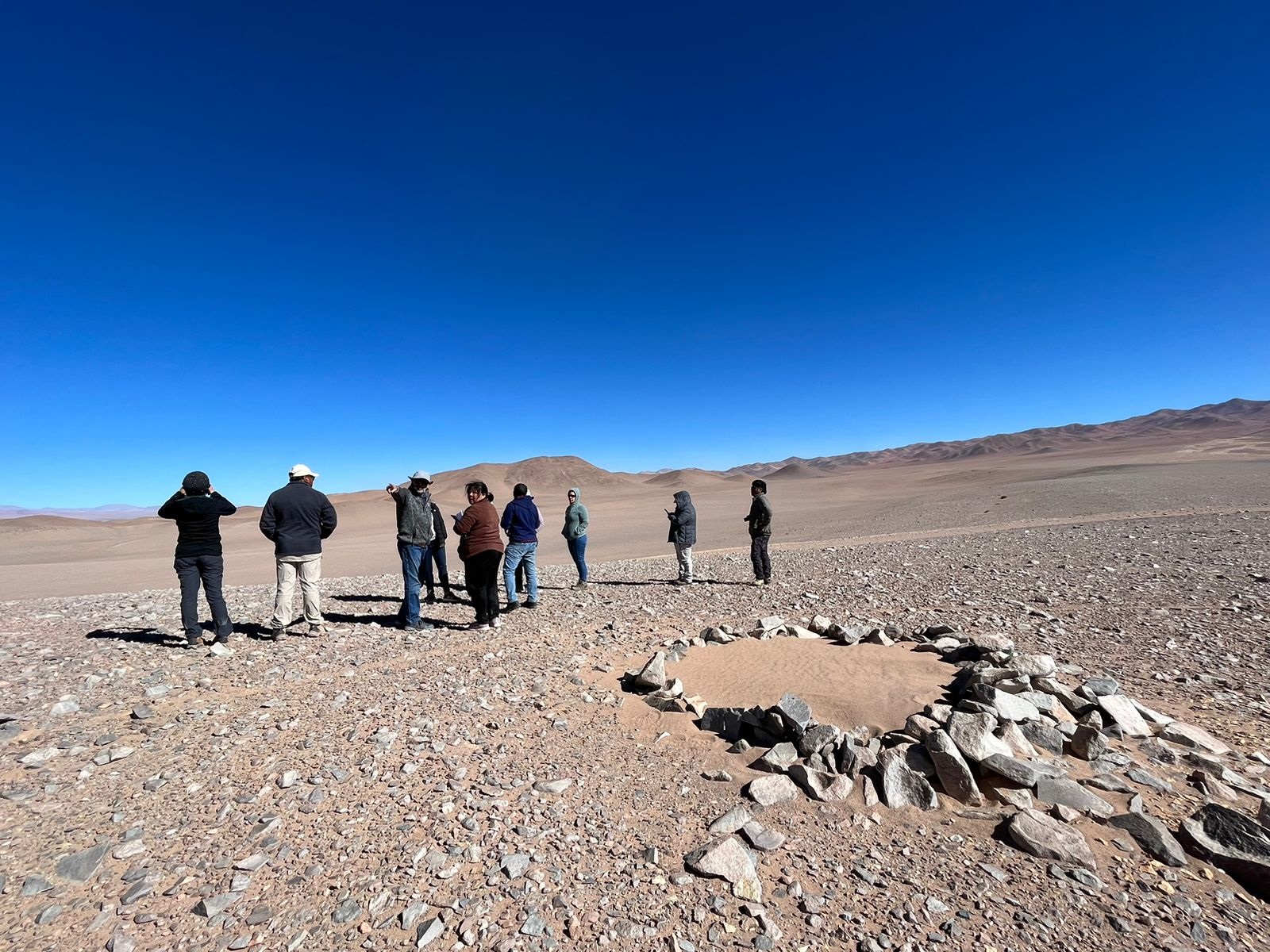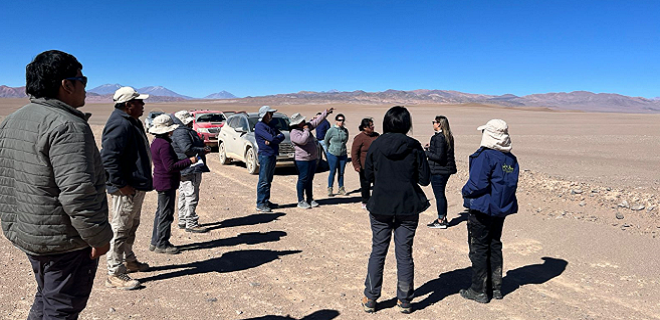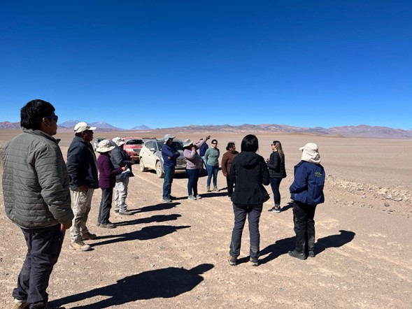 El objetivo de esta actividad fue recorrer el espacio geográfico para hacer un reconocimiento del territorio junto a los profesionales que participan de la evaluación ambiental del Sernageomin y de la Seremi del Medio Ambiente). En la ocasión fueron acompañados por miembros de la Comunidad Indígena de Peine (comunidad más cercana al proyecto), analizando posibles afectaciones ambientales, producto de las partes, obras y actividades del proyecto.