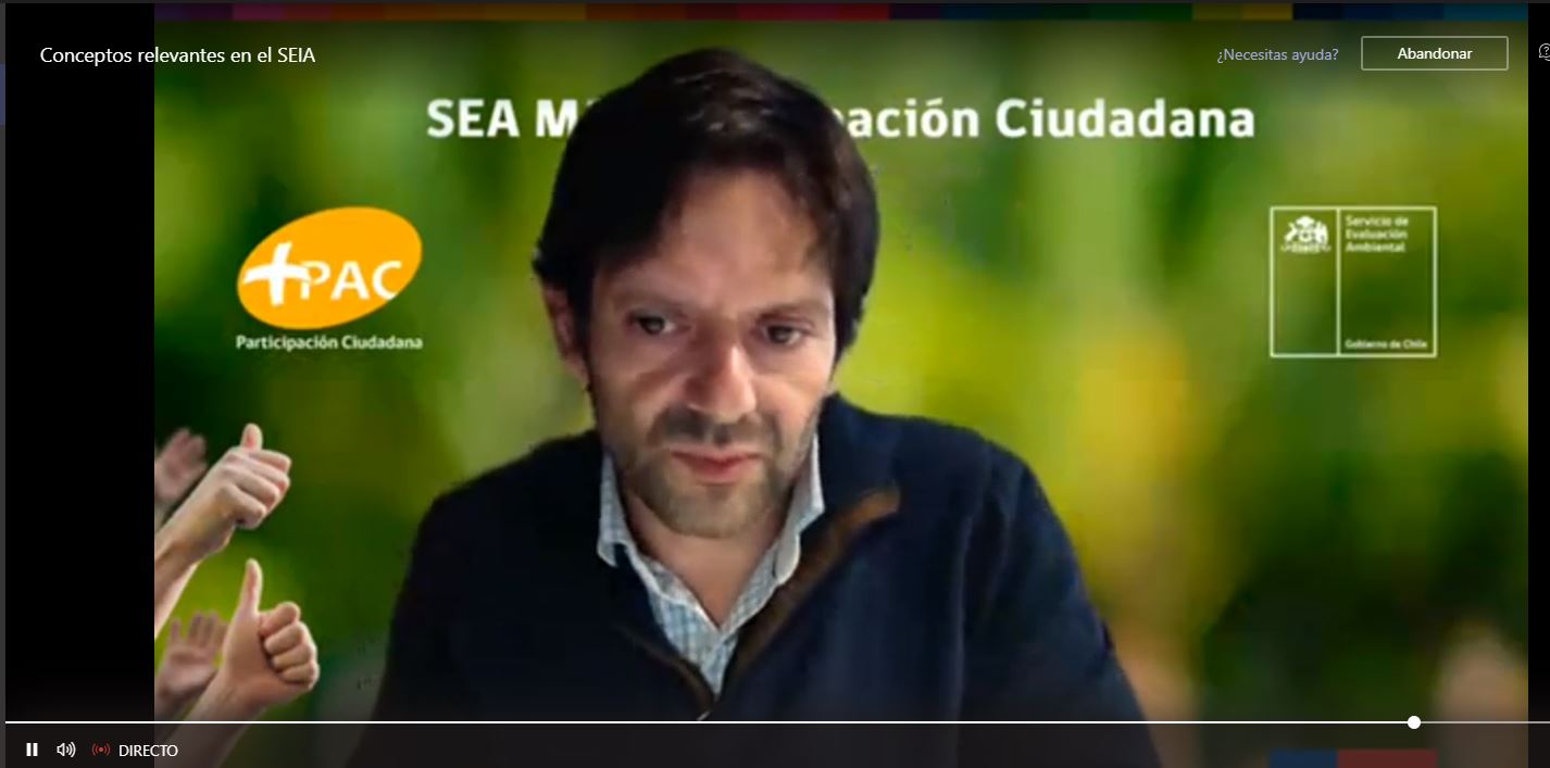 - Conceptos relevantes en el SEIA, relatado por el ingeniero Rodrigo Román, profesional del Departamento de Asistencia a Regiones, dedicado a la evaluación ambiental de proyectos, con 10 años experiencia en la antigua Comisión Nacional del Medio Ambiente (Conama) y el SEA.