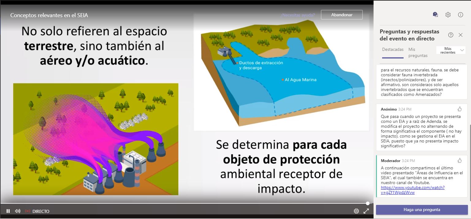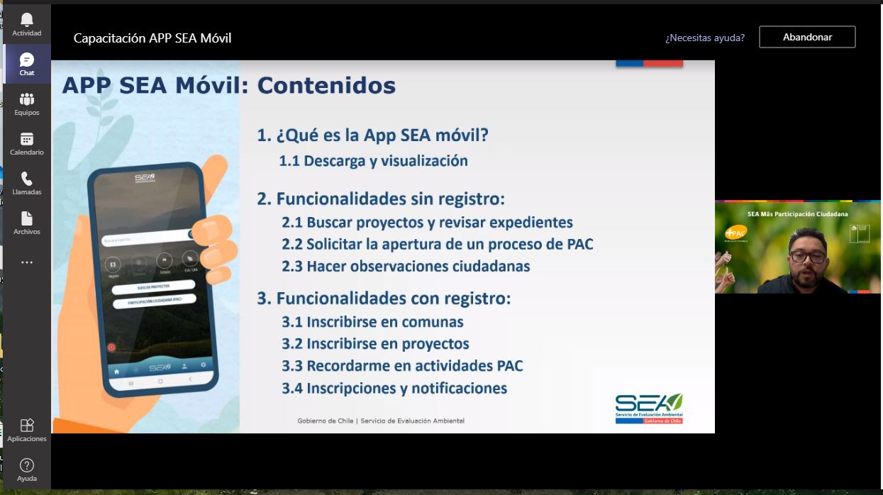 Estas capacitaciones están abiertas a toda la ciudadanía y su objetivo es dar a conocer distintos aspectos que confluyen en la evaluación ambiental y el procedimiento del SEIA. La metodología contempla la exposición en vivo de los profesionales del SEA y la realización de consultas a través de un chat interactivo, las que son respondidas al final del taller.
