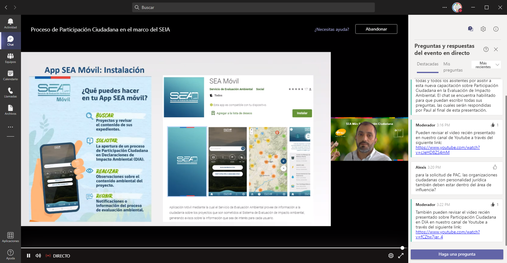 - Procedimiento SEIA y SEA: relatado por el ingeniero civil geógrafo Rodrigo Rosales Díaz, profesional del Departamento de Estudios y Desarrollo de la Dirección Ejecutiva del SEA, con más de 6 años de experiencia en procesos de evaluación ambiental de proyectos en el SEIA.