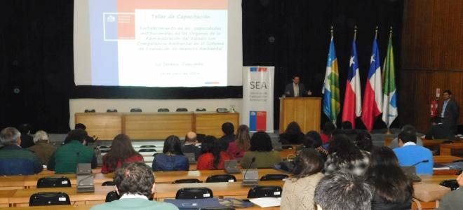 Con la finalidad de reforzar el trabajo que realizan los Órganos de la Administración del Estado con competencias ambientales (OAECA), se realizó el pasado 16 de Junio en la ciudad de La Serena, el taller denominado “Fortalecimiento de capacidades Institucionales de los OAECA en el Sistema de Evaluación de Impacto Ambiental”. El mencionado Taller contó con la participación de al menos 45 profesionales de los distintos servicios y municipios regionales.