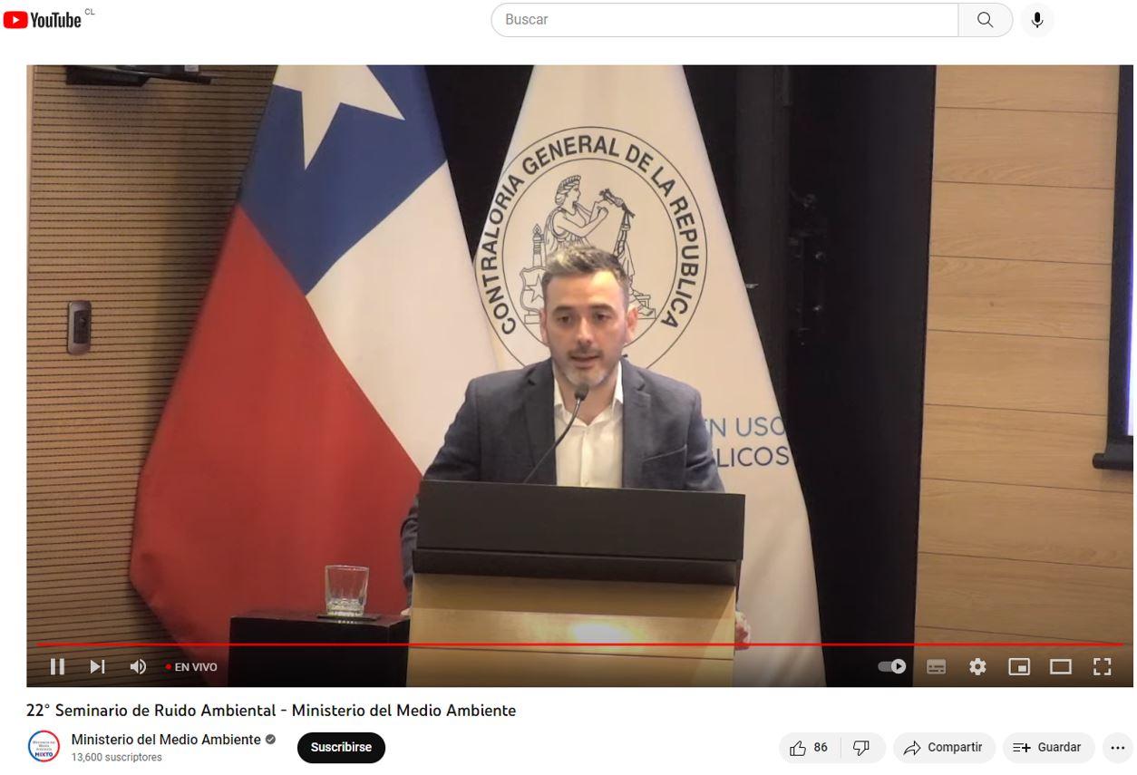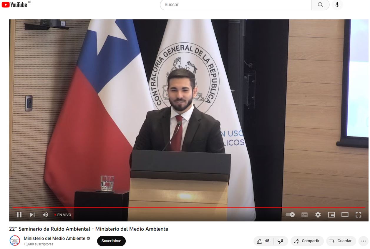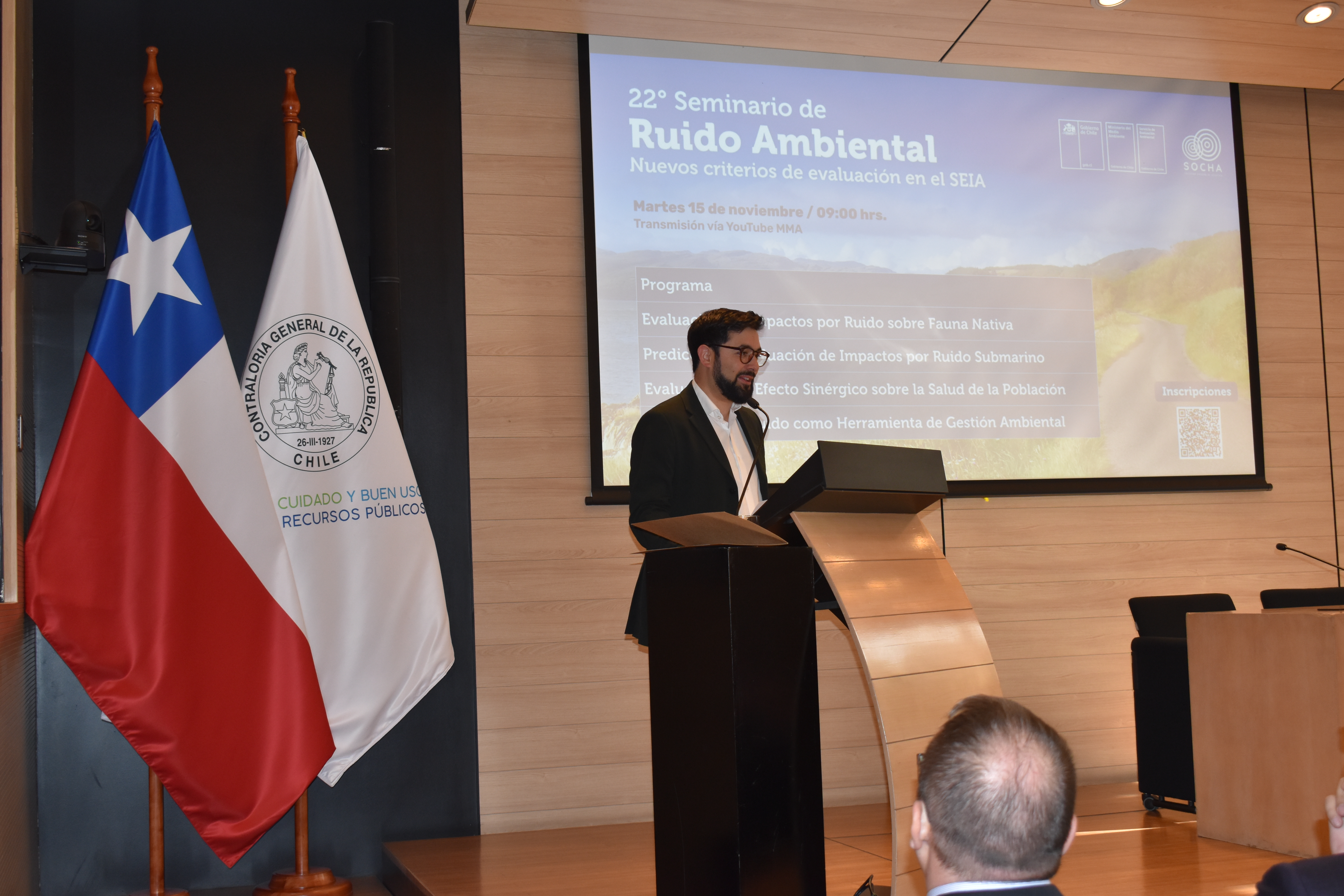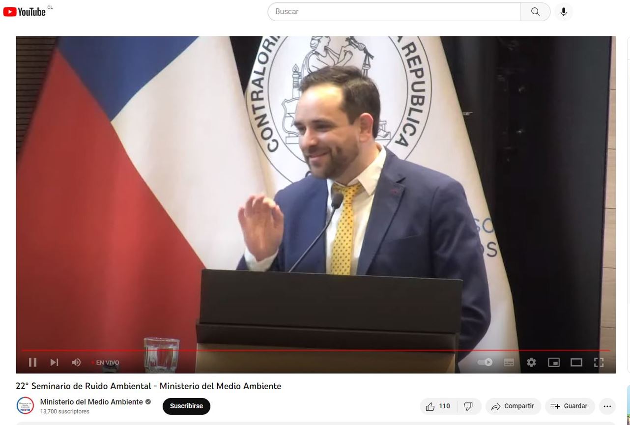 La primera exposición la realizó el profesional de la División de Evaluación Ambiental y Participación Ciudadana del SEA, David Parra Cuevas, presentando el Criterio de evaluación en el SEIA: Evaluación de impactos por ruido sobre fauna nativa. La segunda charla fue relata por Camilo Padilla Reinoso, del Departamento Ruido Lumínica y Olores División de Calidad del Aire del MMA, referido al Criterio de evaluación en el SEIA: Predicción y evaluación de impactos por ruido submarino. Más tarde nuevamente expuso David Parra sobre el Criterio de Evaluación en el SEIA: Evaluación del efecto sinérgico asociado a impactos por ruido sobre la salud de la población. Luego se realizó la exposición Resultados red de monitoreo de ruido ambiental: 2020-2022, del profesional del MMA, Patricio Priede Sánchez, también funcionario del Departamento Ruido Lumínica y Olores.