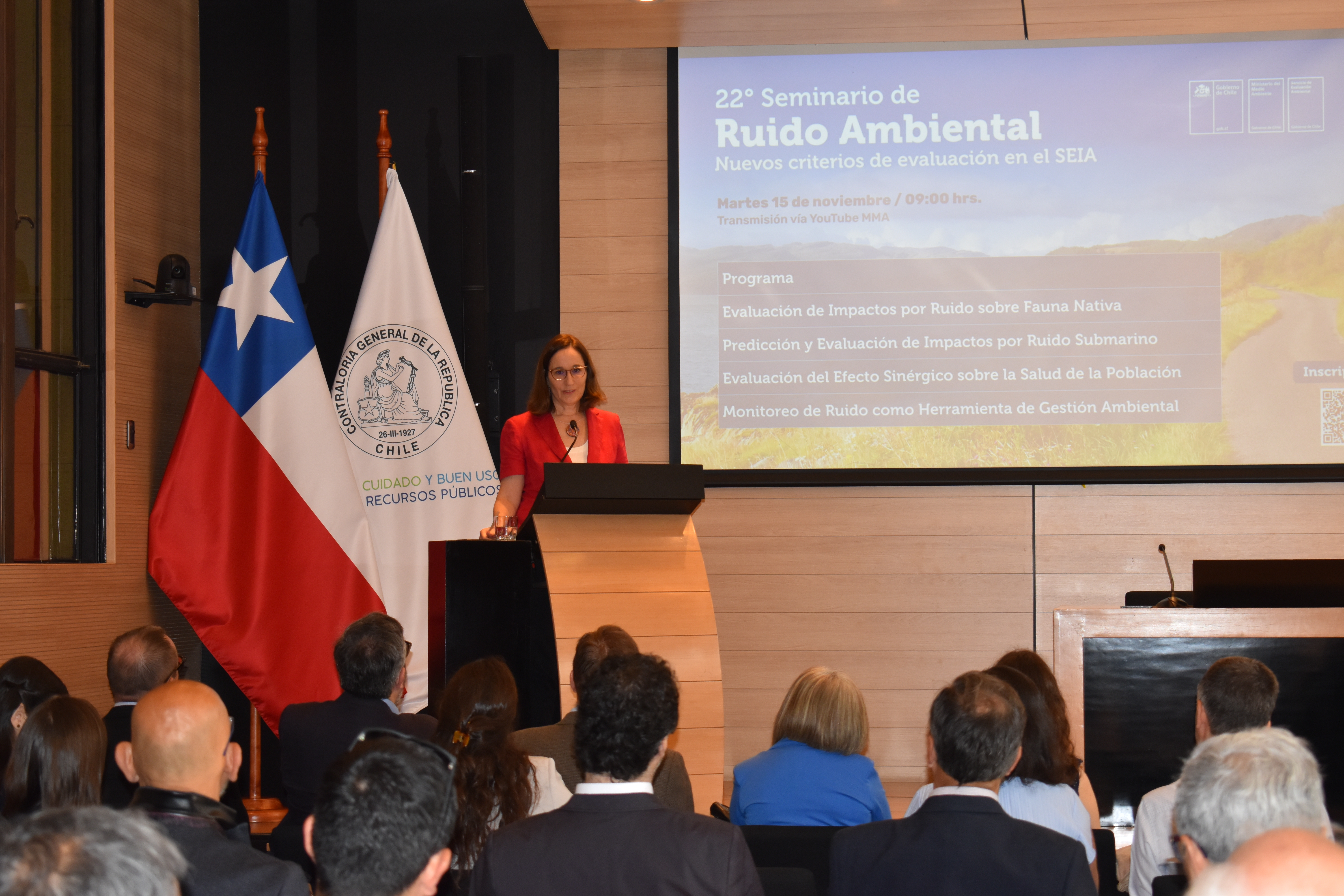 La jornada de exposiciones contó con palabras de saludo del ministro (s) del MMA, Maximiliano Proaño, y de la directora ejecutiva del SEA, Valentina Durán, y tuvo como eje central los nuevos criterios de evaluación de ruido en el Sistema de Evaluación de Impacto Ambiental (SEIA):