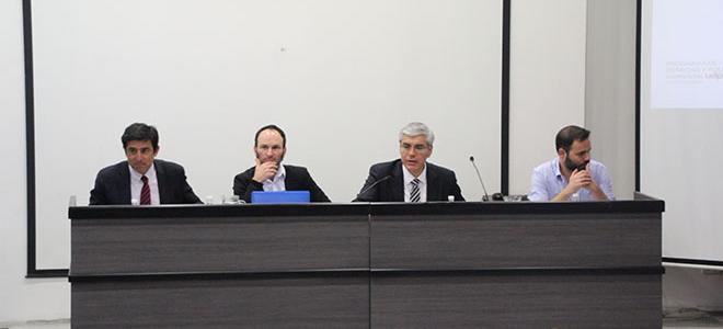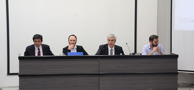 El director ejecutivo del SEA, Hernán Brücher Valenzuela, participó del Primer Panel denominado “Diseño institucional del SEA”, en el que compartió junto a Fernando Rosenblatt, académico de Ciencias Políticas de la UDP; Eduardo Cordero, profesor de Derecho de la PUCV, y el moderador Matías Guiloff, académico de Derecho de la UDP.