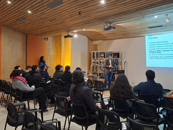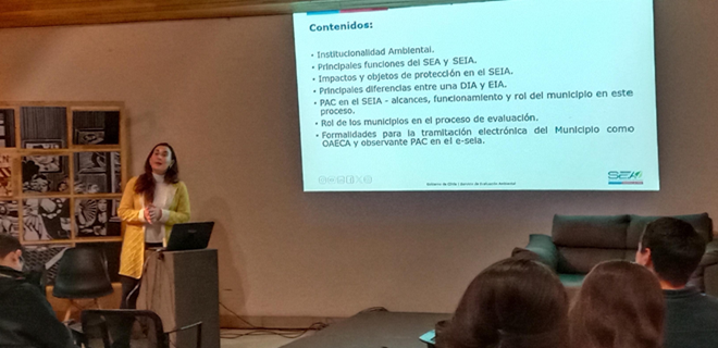 La capacitación fue encabezada por la directora regional del SEA Valparaíso, Paola La Rocca Matar, y contó con las exposiciones de los profesionales Claudio González Flores, Gerardo Anabalón Álamos y Rocío Escalona Requena.
