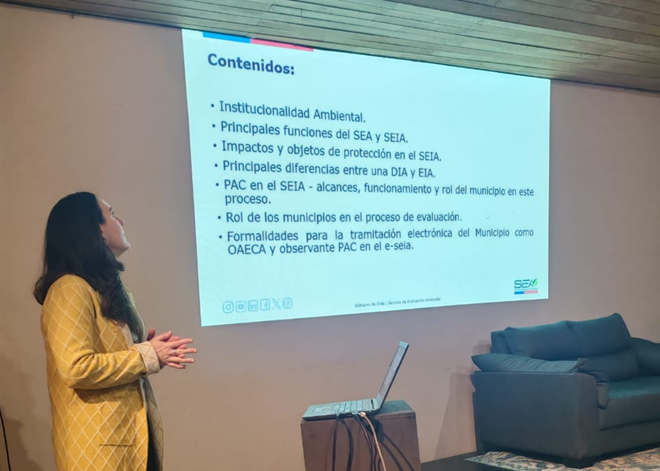 La actividad tuvo como objetivo fortalecer los conocimientos sobre la institucionalidad ambiental, los aspectos procedimentales del SEIA, los impactos y objetos de protección ambiental, el proceso de participación ciudadana y, especialmente, el rol que cumplen los municipios en este contexto. Además, se informaron las competencias municipales contempladas en el instructivo 202599102298 del SEA.