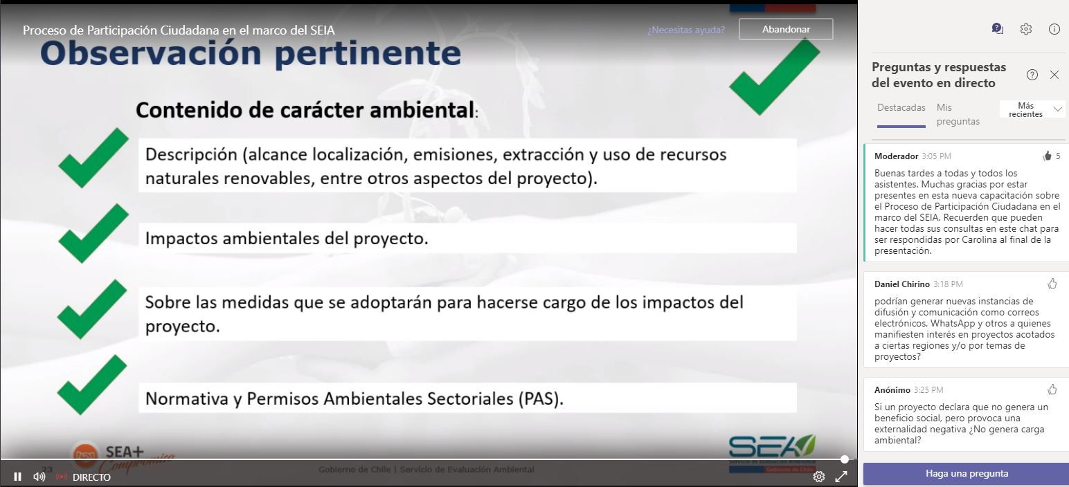 La División de Evaluación Ambiental y Participación Ciudadana del Servicio de Evaluación Ambiental vivió una nueva jornada de las capacitaciones en vivo el martes 29 de junio.