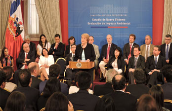 En una ceremonia realizada esta mañana en el salón Montt Varas del Palacio de La Moneda, la Presidenta Michelle Bachelet firmó el decreto que crea la Comisión Asesora Presidencial para el estudio de un nuevo Sistema de Evaluación de Impacto Ambiental (SEIA). Dicha instancia será presidida por el ministro del Medio Ambiente, Pablo Badenier, quien firmó el documento junto con la Mandataria.