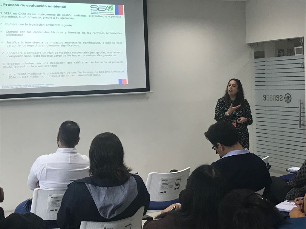 Hernán Joglar fue uno de los oradores en la ceremonia de lanzamiento de EVA y su exposición se refirió a las experiencias y buenas prácticas con el SEIA Electrónico. Andrea Peña, por su parte dictó un taller en el Senace sobre el proceso de evaluación, la PAC y la determinación del Área de Influencia.