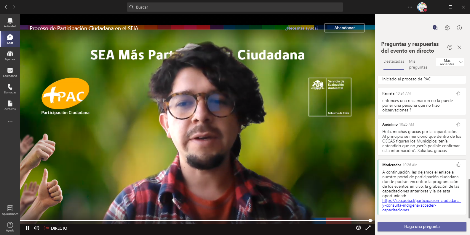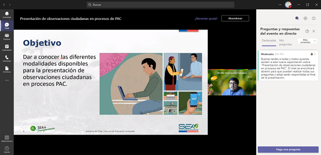 El martes 26 de julio se llevó a cabo la quinta jornada de las capacitaciones en vivo que organiza y desarrolla la División de Evaluación Ambiental y Participación Ciudadana del Servicio de Evaluación Ambiental (Devapac).