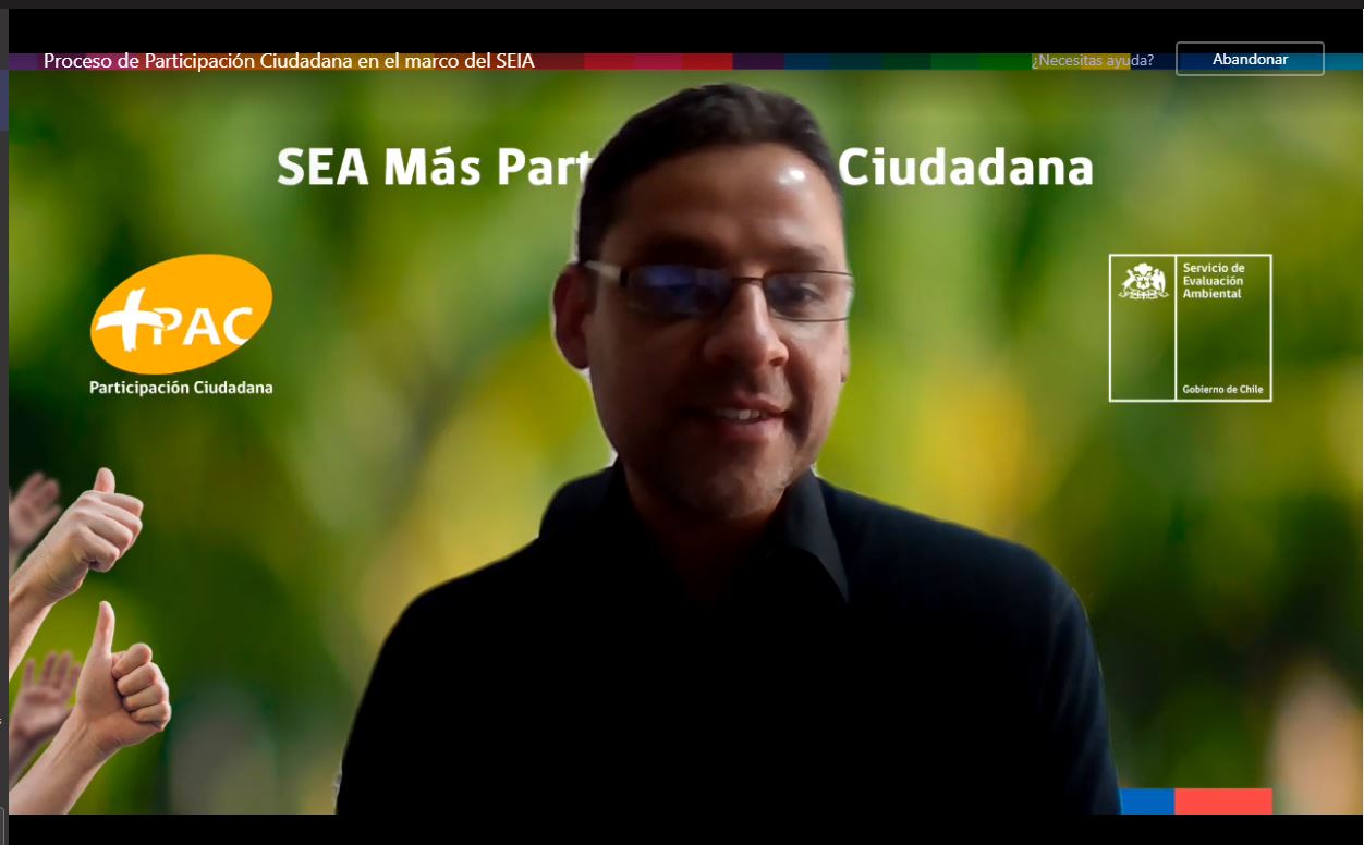 - Proceso de Participación Ciudadana en el marco del SEIA, relatado por el profesional Luis Pezo Orellana, antropólogo social, evaluador ambiental especialista en temas de participación ciudadana, evaluación de medio humano y consulta indígena, con 10 años de experiencia en el SEA.