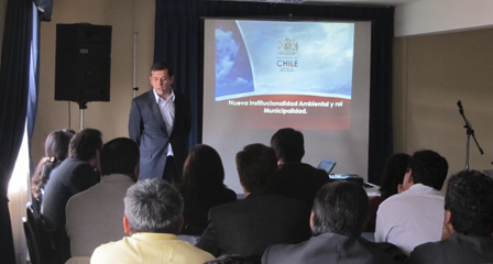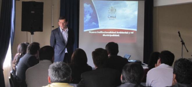 El director regional del SEA de la Araucanía, Eduardo Rodríguez, expuso ante 32 directores de Obras de la Región de La Araucanía sobre el nuevo modelo de la institucionalidad ambiental y los roles que desempeña el municipio en la evaluación ambiental de proyectos, especialmente aquellos relacionados con el ámbito de sus competencias, la difusión de la información ambiental y el fomento a la participación ciudadana.
