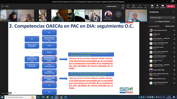 Durante la jornada se explicó el contexto de la reunión, las competencias de los Oaeca en la PAC en DIA, y se hizo el traspaso de las observaciones ciudadanas de competencia de cada Servicio convocado.