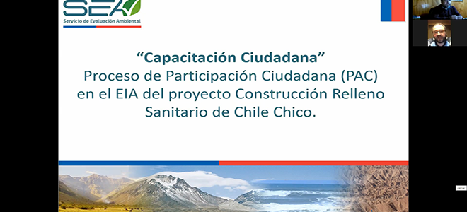 En el marco del proceso de Participación Ciudadana (PAC) en el Estudio de Impacto Ambiental (EIA) del proyecto Construcción Relleno Sanitario de Chile Chico, presentado por la Municipalidad de Chile Chico, el pasado 9 de junio se llevó a cabo el segundo encuentro con la comunidad, a través de medios telemáticos, debido al contexto de pandemia por COVID-19.