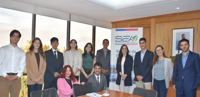 En el marco de los convenios de colaboración suscritos entre el Servicio de Evaluación Ambiental (SEA) y los programas especializados en Derecho Ambiental de la Universidad Diego Portales y la Universidad de Chile, el pasado jueves 17 de abril se dio la bienvenida oficial a un nuevo grupo de estudiantes que realizarán su pasantía profesional en la institución.