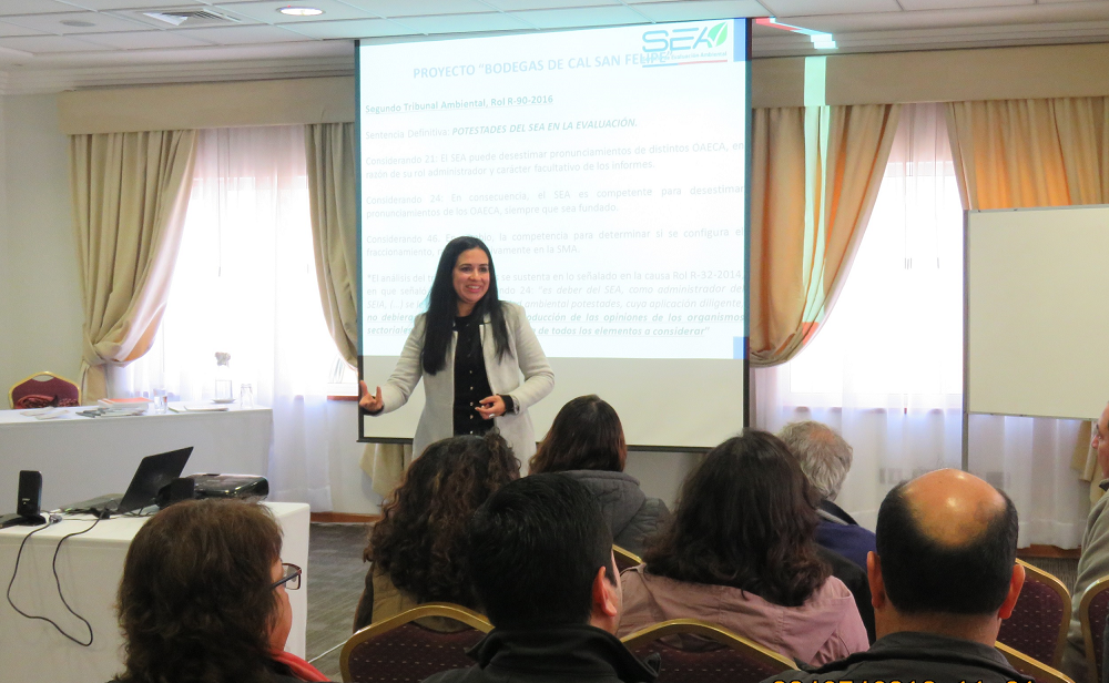 En la jornada, la asesora jurídica del SEA Atacama, Yurac Saavedra Naranjo, expuso fallos destacados del Tribunal Ambiental para graficar criterios y elementos de interés para la evaluación ambiental, y para enfatizar la importancia de que los pronunciamientos de los organismos de la administración del Estado con competencia ambiental (Oaecas) sean dentro de sus competencias y debidamente fundados.