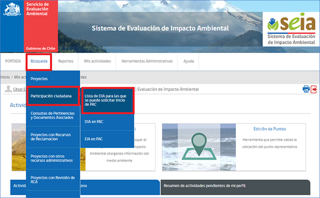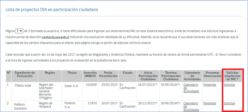 El Servicio de Evaluación Ambiental anunció hoy un mejora en su plataforma electrónica del Sistema de Evaluación de Impacto Ambiental (e-SEIA), la que consiste en la habilitación de una nueva funcionalidad que le otorga a la ciudadanía la posibilidad de solicitar la ampliación del proceso de Participación Ciudadana (PAC) en las Declaraciones de Impacto Ambiental (DIA) que han tenido modificaciones sustantivas al proyecto original durante su evaluación.
