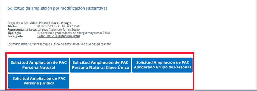 Opción de solicitar ampliación PAC por modificaciones sustantivas en DIA: