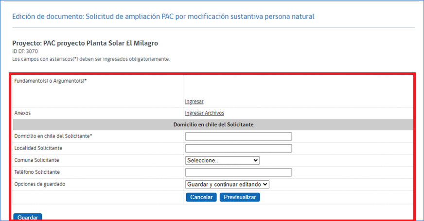 Opción de editar solicitud ampliación PAC por modificaciones sustantivas en DIA:
