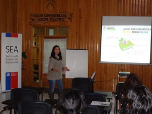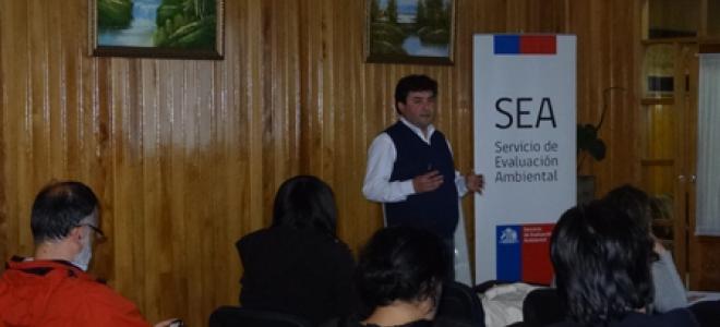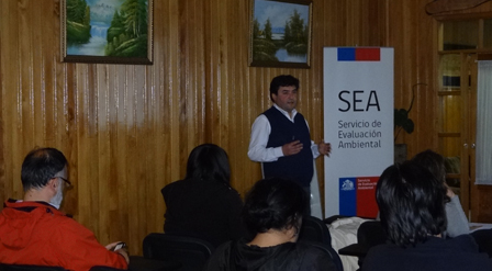 Posteriormente, profesionales del SEA expusieron sobre evaluación ambiental. “Institucionalidad ambiental y propuesta del nuevo reglamento del SEIA”, se denominó la exposición presentada por Mario Sanhueza, jefe del SEIA Los Lagos; “Uso de la plataforma electrónica en la evaluación de impacto ambiental”, materia abordada por Felipe Arancibia, evaluador del SEIA; “Participación Ciudadana y Medio Humano”, por Patricia Hernández, encargada de Participación Ciudadana. Finalmente expuso el fiscalizador de la Superintendencia de Medio Ambiente (SMA), José Moraga, quien expuso sobre el rol de su institución.