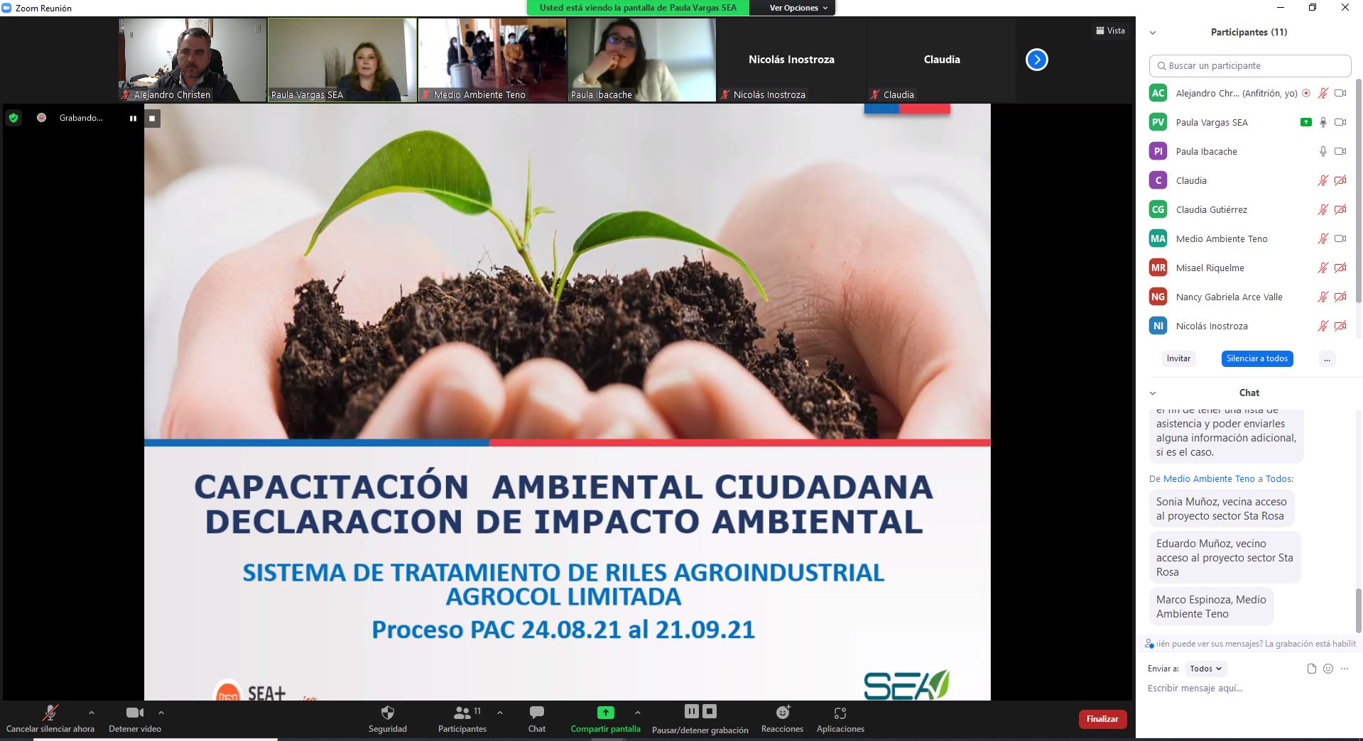El 24 de agosto se llevaron a cabo vía remota dos actividades de apresto y capacitación ciudadana en el contexto de la evaluación ambiental del proyecto denominado Sistema de Tratamiento de Riles Agroindustrial Agrocol Limitada.