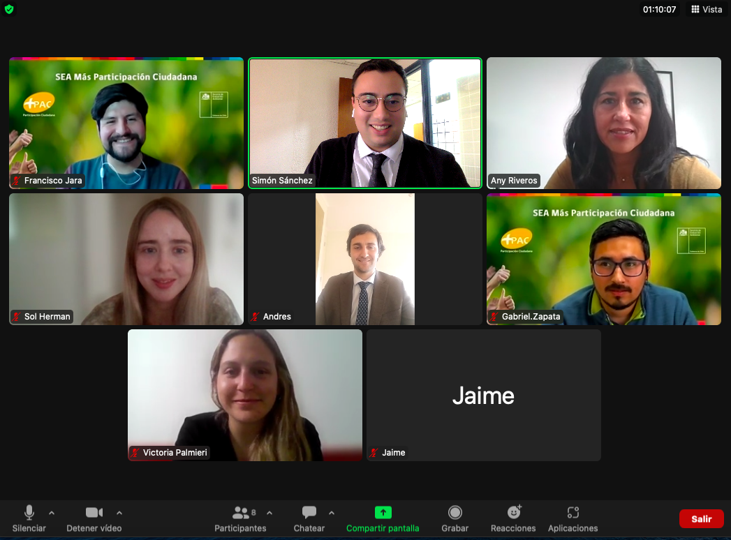 Por último, el día de 19 de octubre, se efectuó un encuentro telemático que contó, entre otros, con la asistencia virtual de un grupo de funcionarios del Ministerio de Ambiente y Desarrollo Sostenible de Argentina.