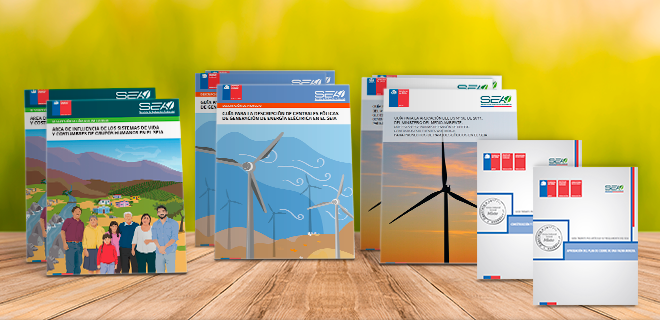 Se trata de la “Guía para la Descripción de Centrales Eólicas de Generación de Energía Eléctrica en el SEIA”; “Guía para la Aplicación del DS N°38, de 2011, del Ministerio del Medio Ambiente, que Establece Norma de Emisión de Ruidos Generados por Fuentes que Indica, para Proyectos de Parques Eólicos en el SEIA”; “Guía Área de Influencia de los Sistemas de Vida y Costumbres de Grupos Humanos en el SEIA”; “Guías Trámite PAS del Artículo 135 del Reglamento del SEIA, Permiso para Construcción y Operación de Depósitos de Relaves”, y “Guía Trámite PAS del Artículo 137 del Reglamento del SEIA, Permiso para Aprobación del Plan de Cierre de una Faena Minera”.