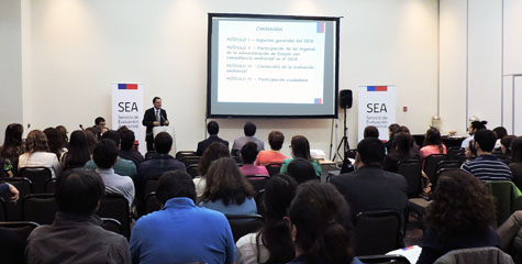 El Director Ejecutivo del Servicio de Evaluación Ambiental (SEA), Jorge Troncoso, junto a la Directora del SEA Región Metropolitana (RM), Andrea Paredes, encabezaron el jueves 30 de abril la inauguración del taller DS N° 40/2012 del Ministerio de Medio Ambiente (Reglamento del SEIA), destinados a los OAECA y que se inscribe en la implementación de la medida de Gestión y Fortalecimiento de Capacidad Institucional, en el Marco del Plan de Reforzamiento a la Inversión, anunciado por Presidencia.
