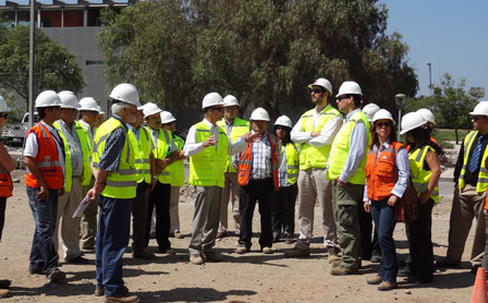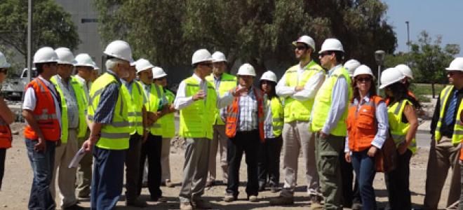 El director del SEA RM, Kay Bergamini, junto al Seremi de Medio Ambiente RM, José Ignacio Pinochet, encabezaron una visita a la planta de tratamiento de aguas servidas “Mapocho”, de la empresa Aguas Andinas S.A., en el marco de la primera reunión del año 2012 del Comité de Seguimiento del proyecto “100% Saneamiento de la Cuenca de Santiago”.