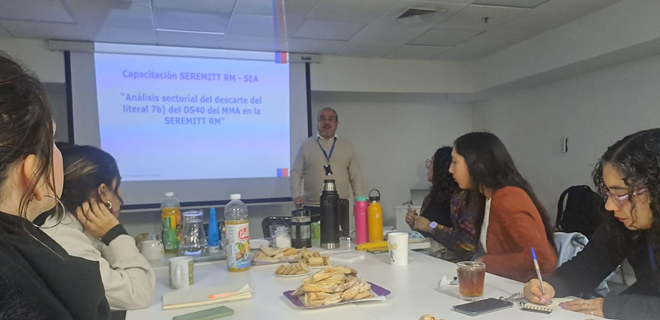 En el marco del programa de capacitaciones impulsado por la Dirección Regional del SEA Metropolitano, profesionales del Servicio participaron en una jornada de formación técnica realizada en las dependencias de la Secretaría Regional Ministerial de Transportes y Telecomunicaciones Metropolitana.