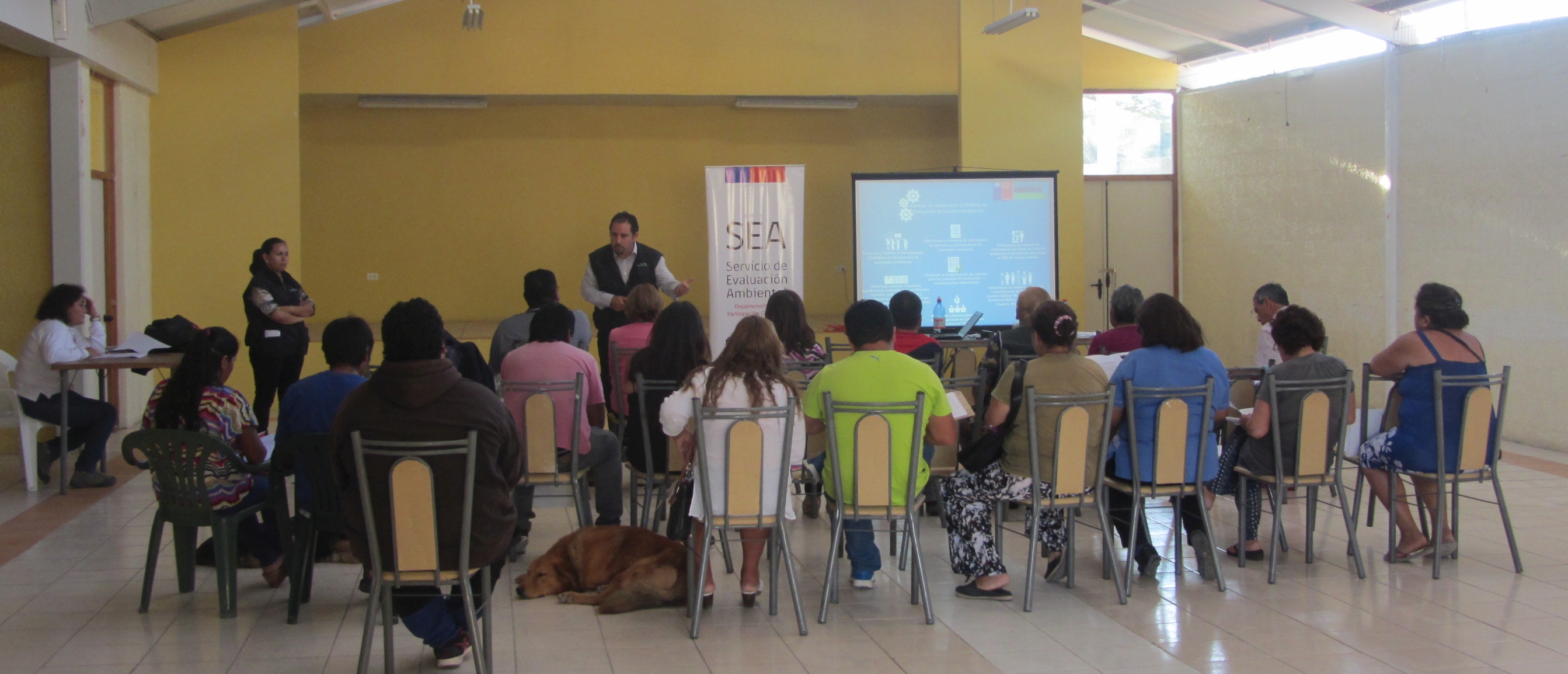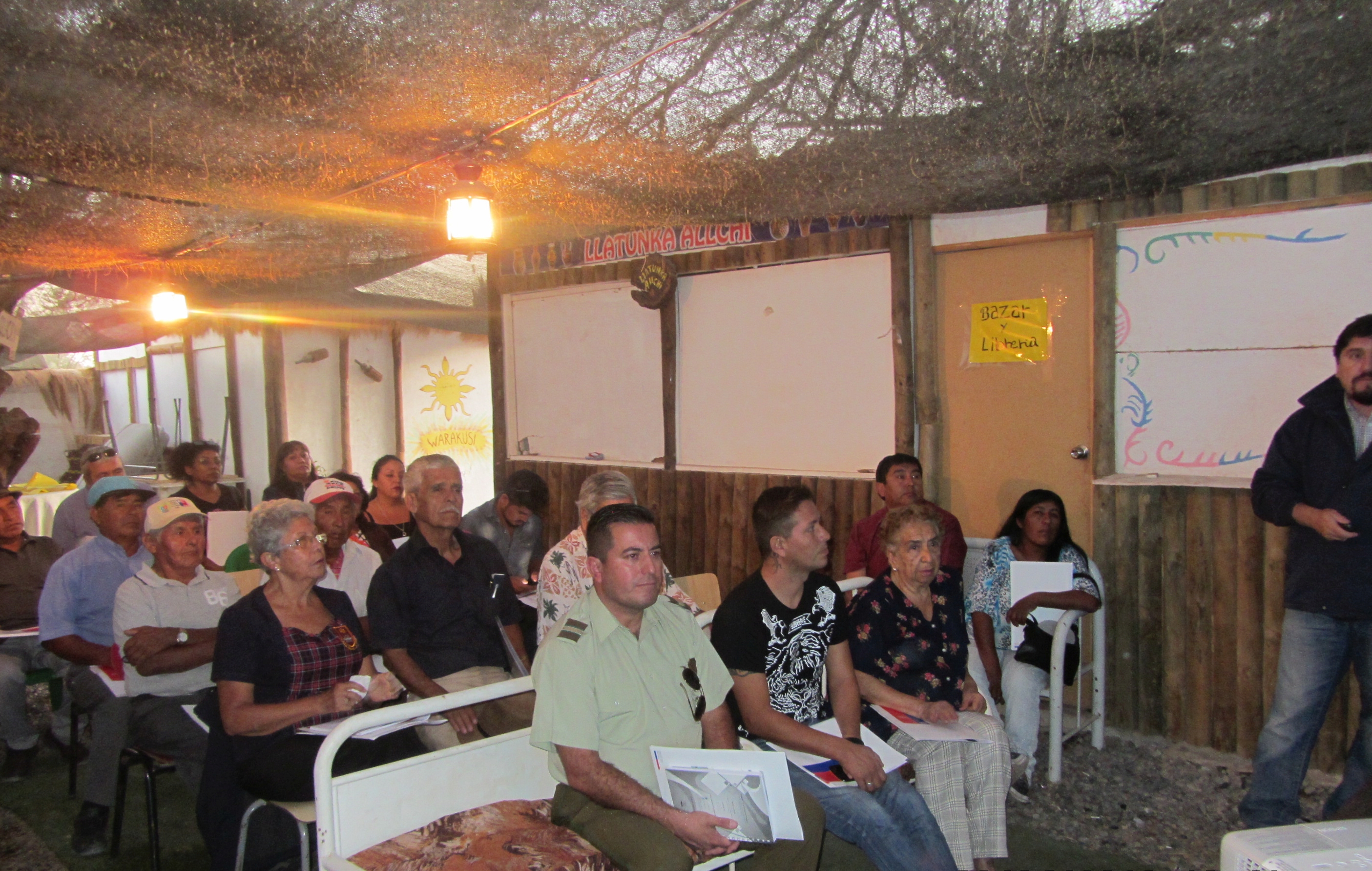 En ese marco se realizaron tres talleres de Capacitación Ambiental y Encuentros Comunidad – Titular en las localidades antes mencionadas. El día 29 de marzo en Pozo Almonte, en la Sede Junta Vecinal N°23 “Buen Retiro”, el 06 de abril en La Tirana, en el Centro Cultural Warakusi, finalizando en La Huayca el día 12 de abril, en la sede de su Junta de Vecinos.