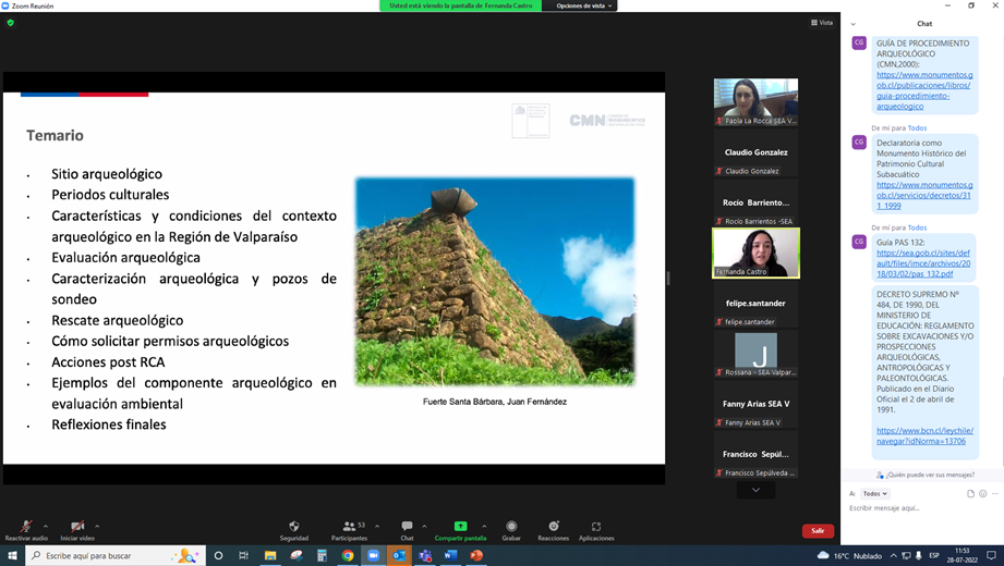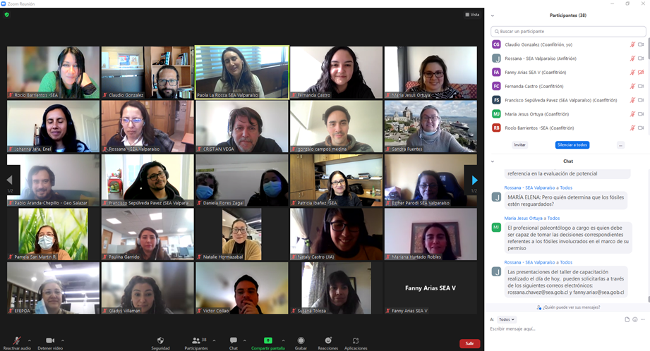 En el marco del Plan de Capacitaciones de la Dirección Regional del SEA Valparaíso, especialistas en arqueología y paleontología del Consejo de Monumentos Naciones (CMN) y de la Dirección Ejecutiva del SEA, desarrollaron el taller de capacitación denominado Descripción y evaluación en el SEIA del Patrimonio Arqueológico y Paleontológico. La actividad fue liderada por la directora regional del SEA de Valparaíso, Paola La Rocca.