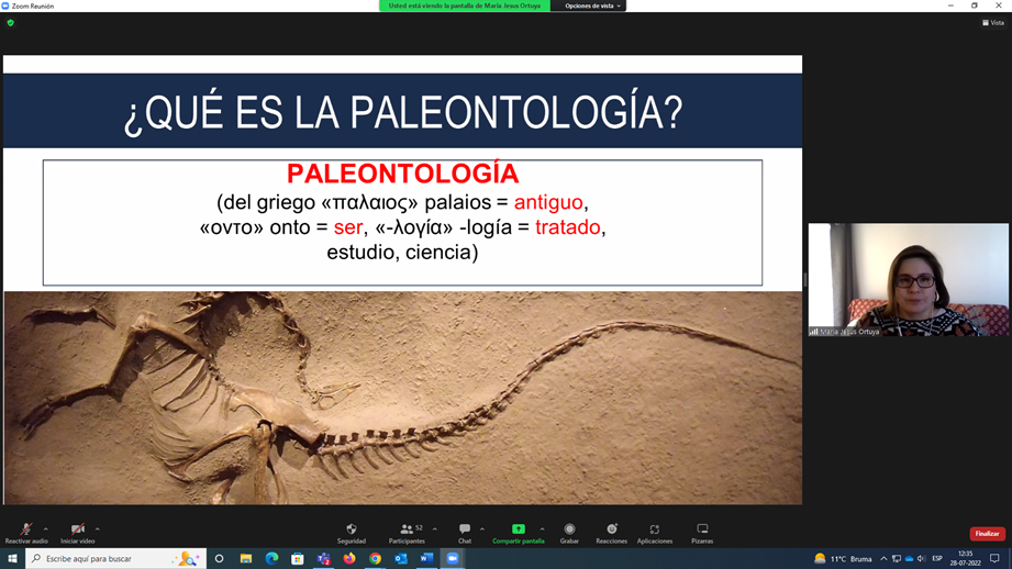 Finalmente, la exposición sobre Paleontología y evaluación del componente paleontológico fue realizada por María Jesús Ortuya Méndez, geóloga y paleontóloga, quien se ha desempeñado en la investigación de fósiles de Patagonia y Antártica, microfósiles en el extranjero y ha trabajado en el ámbito de la consultoría paleontológica en proyectos de inversión en el marco del SEIA. Actualmente, es paleontóloga de la Oficina Técnica Regional Metropolitana del Consejo de Monumentos Nacionales.