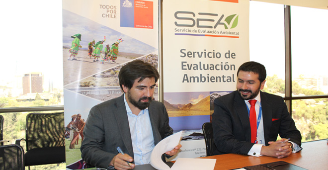 Como la coronación de un trabajo conjunto iniciado el año 2014, el jueves 18 de enero de 2018 se procedió a la firma de un Convenio de Colaboración entre el Servicio de Evaluación Ambiental (SEA) y la Corporación Nacional de Desarrollo Indígena (Conadi), representados por sus autoridades: el Director Ejecutivo (S) del SEA, Juan Cristóbal Moscoso, y el Director Nacional (S) de Conadi, Joaquín Bizama.