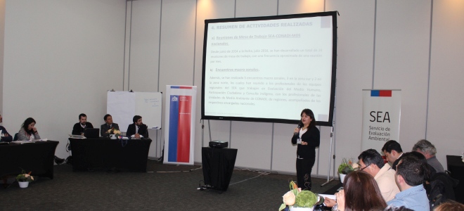La mesa de trabajo SEA-CONADI se instaló en junio de 2014, cuando se estableció la práctica de reuniones mensuales de nivel nacional. Desde entonces, además, se han realizado tres encuentros macrozonales entre profesionales de ambas instituciones.
